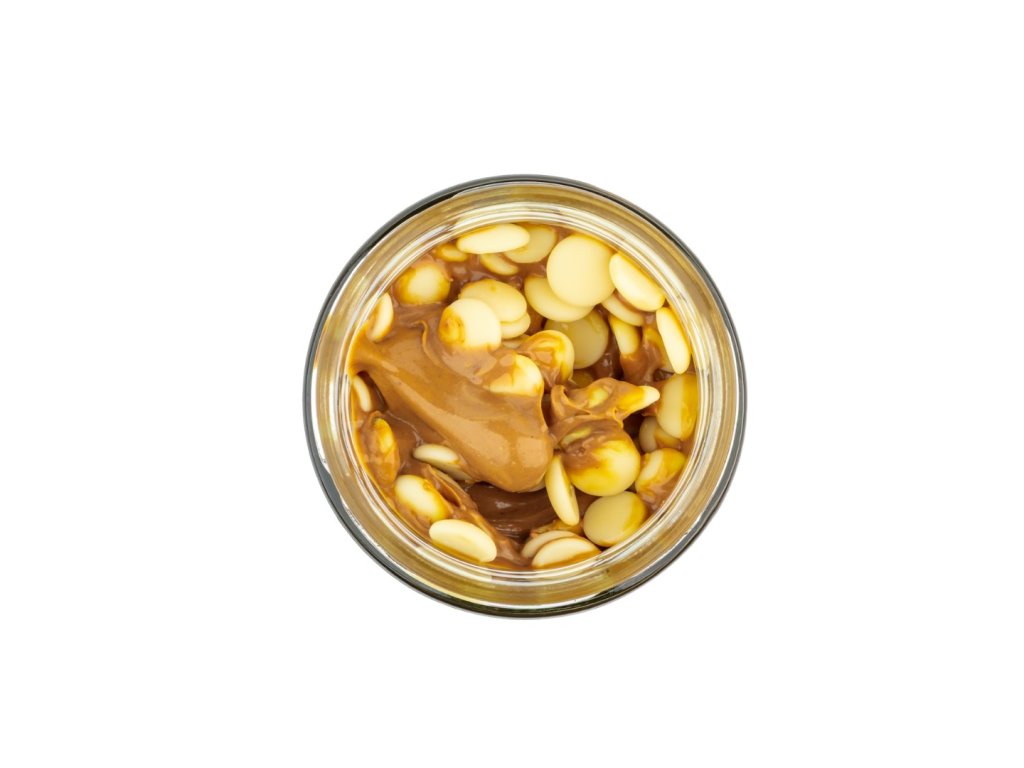 Pistácie (USA) pražené mleté 55 %, cukr třtinový, bílá čokoláda 10 % (cukr, kakaové máslo, sušené mléko plnotučné, emulgátor: sójový lecitin, vanilkový extrakt), mléko sušené odstředěné, ghí. Může obsahovat stopy ostatních skořápkových plodů, arašídů, sezamových semen a oxidu siřičitého.