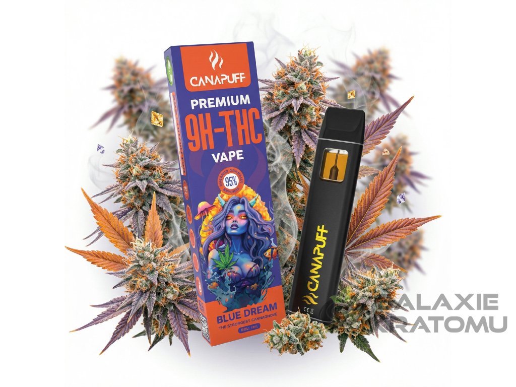 Jednorázová vape Blue Dream 95% 9H‑THC od Canapuff spojuje oblíbený hybridní strain Blue Dream s inovativním kanabinoidem 9H‑THC, vytvořeným jako moderní upgrade současných derivátů s pokročilou molekulární úpravou pro výraznější a progresivnější charakter než klasické 10‑OH‑THC.