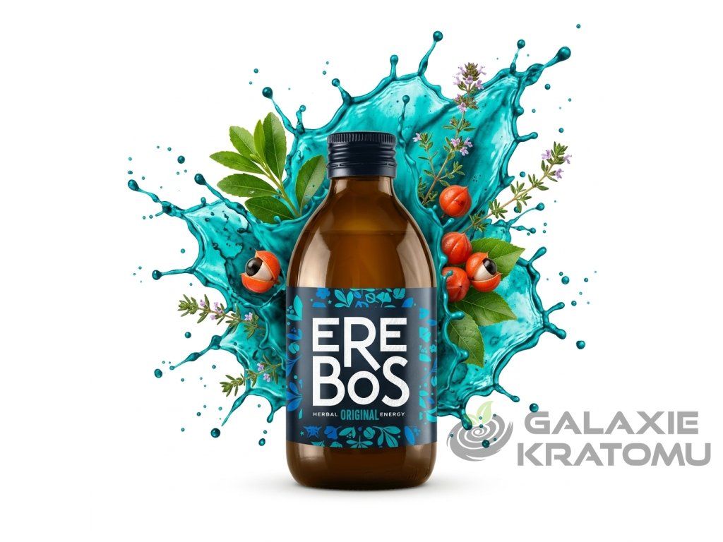 Výluh ze 7 bylin EREBOS (voda, maté, kola , guarana, kotvičník, mateřídouška, kozinec, maral), třtinový cukr, esence EREBOS ORIGINAL™ (přírodní aroma, výluh z bylin a koření), vitamín C, antioxidant: kyselina citronová . Neobsahuje konzervanty, barviva ani umělá aromata. Před vypitím důkladně protřepejte. Skladujte v chladu a temnu. Po otevření ihned spotřebujte. Sedimentace bylin je znakem přírodního charakteru nápoje. Nápoj s vysokým obsahem přírodního kofeinu (40 mg/100 ml) – není vhodný pro děti a těhotné nebo kojící ženy. Kofein pouze z bylin. Originální česká receptura.