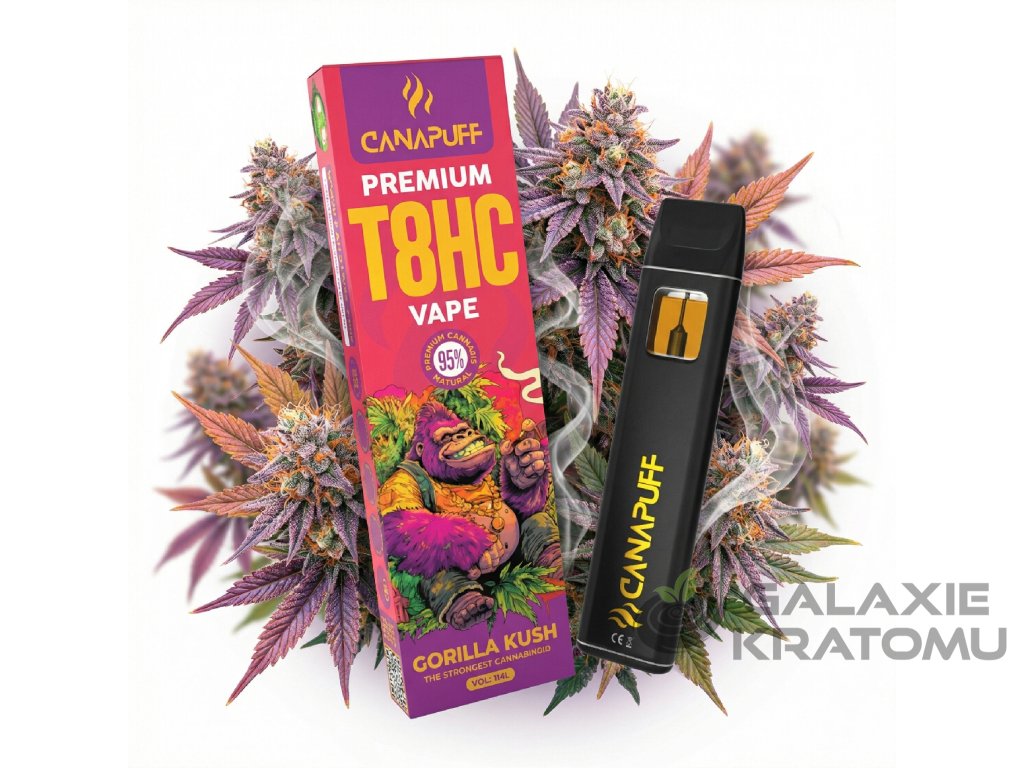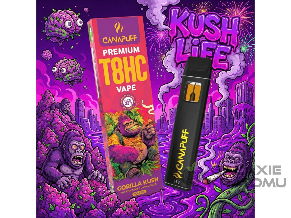 Canapuff T8HC Vape Gorilla Kush 1 ml je prémiový jednorázový vape pro všechny, kteří milují starou dobrou „kush klasiku“, ale chtějí ji zažít v nové T8HC generaci. T8HC (tetra‑8‑hydrokanabinol) je moderní kanabinoid s vyváženým profilem – spojuje jemnou euforii, dlouhotrvající klid a hlubokou relaxaci bez zbytečného mentálního overloadu, takže se hodí hlavně na večerní chill nebo „vypnutí“ po náročném dni.