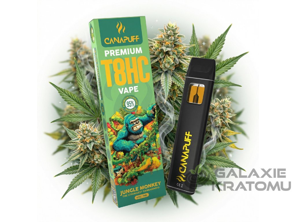 Canapuff T8HC Vape Jungle Monkey 1 ml je jednorázový vaporizér pro všechny, kdo chtějí spojit tropickou svěžest s moderním T8HC kanabinoidem v maximálně pohodlné formě. T8HC (tetra‑8‑hydrocannabinol) představuje novou generaci konopných zážitků – vzniká precizní úpravou přírodních sloučenin a uživatelé jej popisují jako vyváženou kombinaci jemné euforie, hluboké relaxace, klidu a soustředění, aniž by přetěžoval mysl.