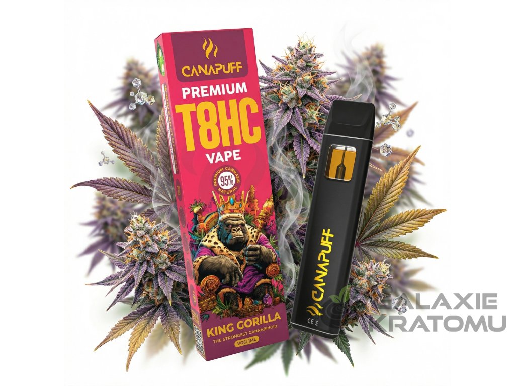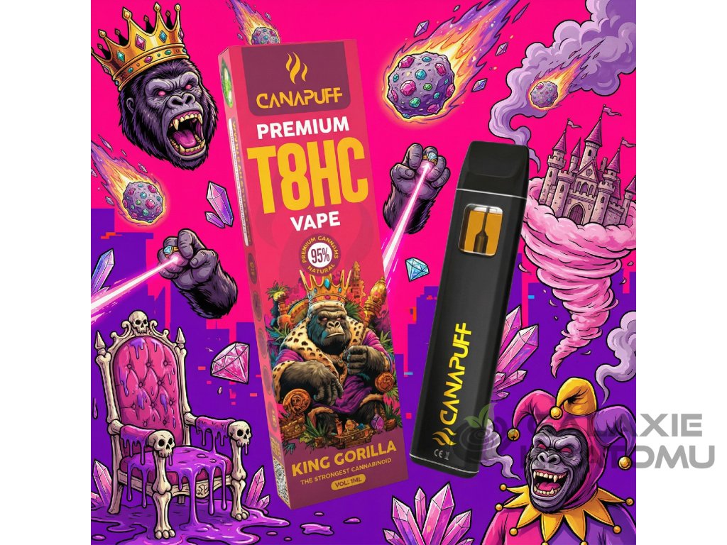 Canapuff T8HC Vape King Gorilla 1 ml je prémiový jednorázový vaporizér pro všechny, kdo chtějí zažít novou generaci konopného zážitku v maximálně pohodlné formě. T8HC (tetra‑8‑hydrokanabinol) je pokročilý kanabinoid s mimořádně vyváženým profilem – uživatelé jej popisují jako ideální kombinaci jemné euforie, hluboké relaxace, klidu a soustředění, bez zbytečného „přetížení hlavy“.