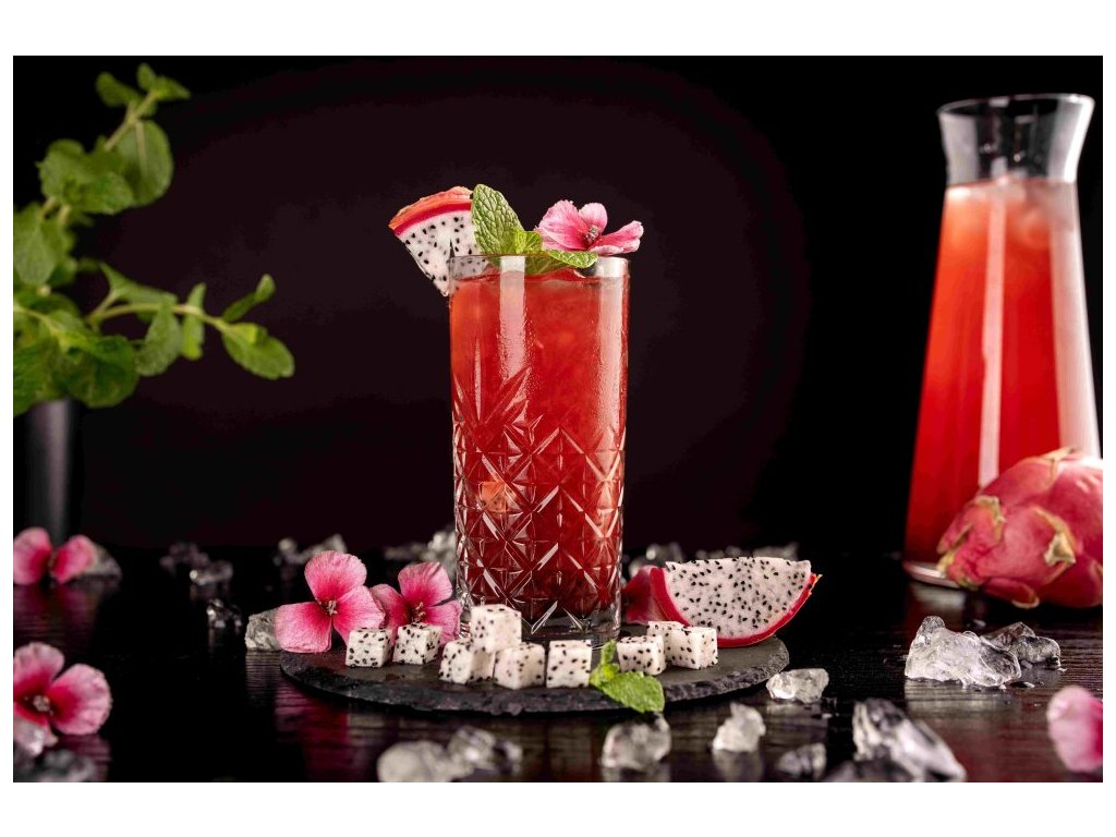 Pithaya – dračí ovoce (51%), koncentráty: višňový, jablečný, pomerančový, citronový, z červené řepy; přírodní aroma, konzervant: sorban draselný, zahušťovadlo: guma guar, sladidlo: steviol-glykosid. Obsahuje přirozeně se vyskytující cukry.