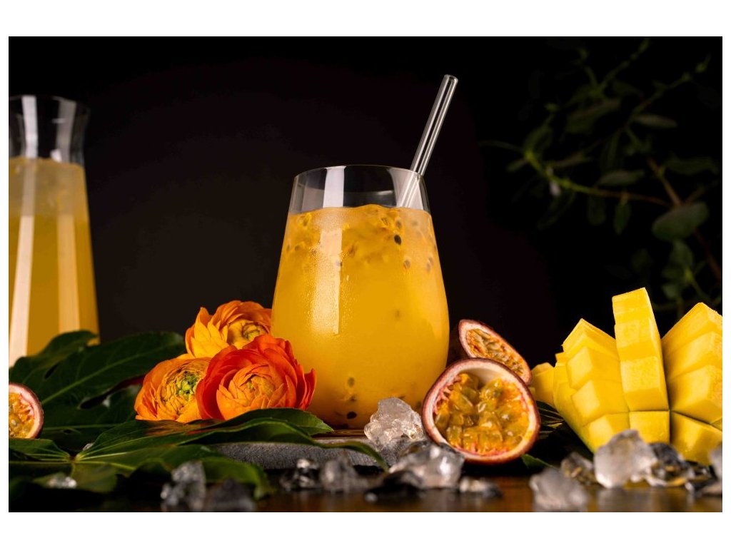 Tato kombinace je ideální pro letní dny. Ochladí, povzbudí a nabije vás energií. Mango přináší bohatou, krémovou sladkost s nádechy broskví a melounu. Jeho hluboké ovocné aroma okamžitě rozeznáte. Maracuja svou pronikavou kyselostí a tropickou svěžestí dokonale vyvažuje sladkost manga. Její jemná jedlá semínka příjemně křupnou mezi zuby.