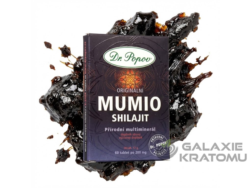 Originální Mumio Dr. Popova neboli Shilajit je přírodní multiminerál, který obsahuje 10 zásadních minerálů (např. vápník, draslík, hořčík), 26 stopových prvků (rubidium, cesium aj.) a další důležité aminokyseliny. Všechny účinné látky jsou ve velmi dobře vstřebatelné formě.