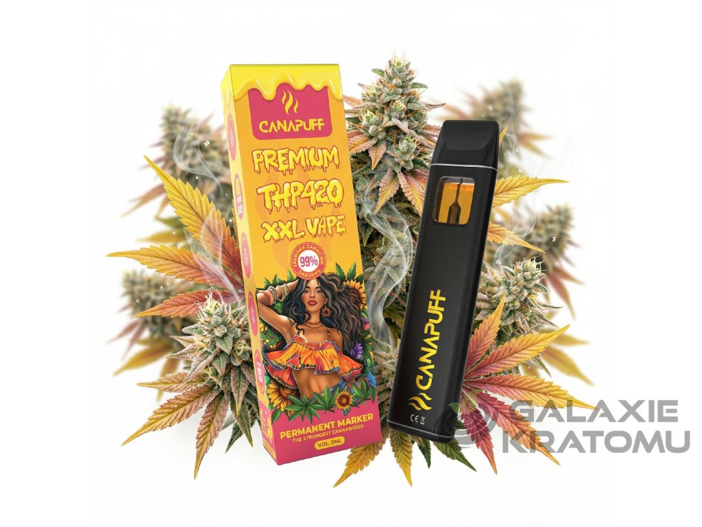 Permanent Marker 99% THP420 – Jednorázovka 2 ml Canapuff představuje novou generaci konopného zážitku díky kanabinoidu THP420, který svými účinky věrně napodobuje delta‑9 THC a je vnímán jako špičková náhrada dnes již zakázaných látek. Tento exkluzivní kanabinoid je vyvíjen a vyráběn výhradně společností Canapuff a je dostupný pouze prostřednictvím oficiální distribuce, což zaručuje pravost a kontrolovanou kvalitu každé šarže.